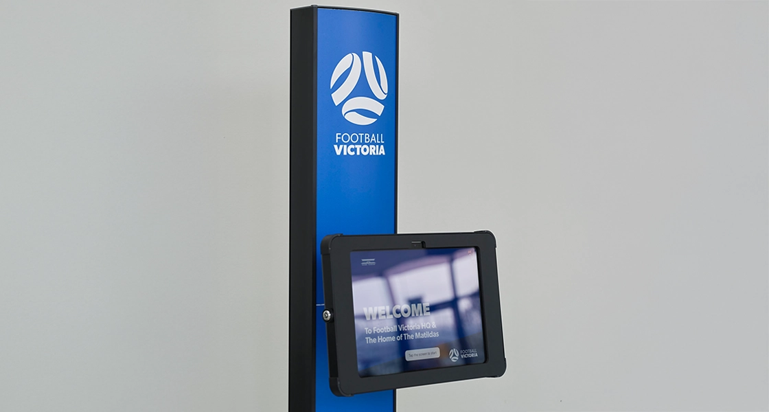 Custom branded welcome station at Football Victoria’s Bundoora HQ, Home of the Matildas.