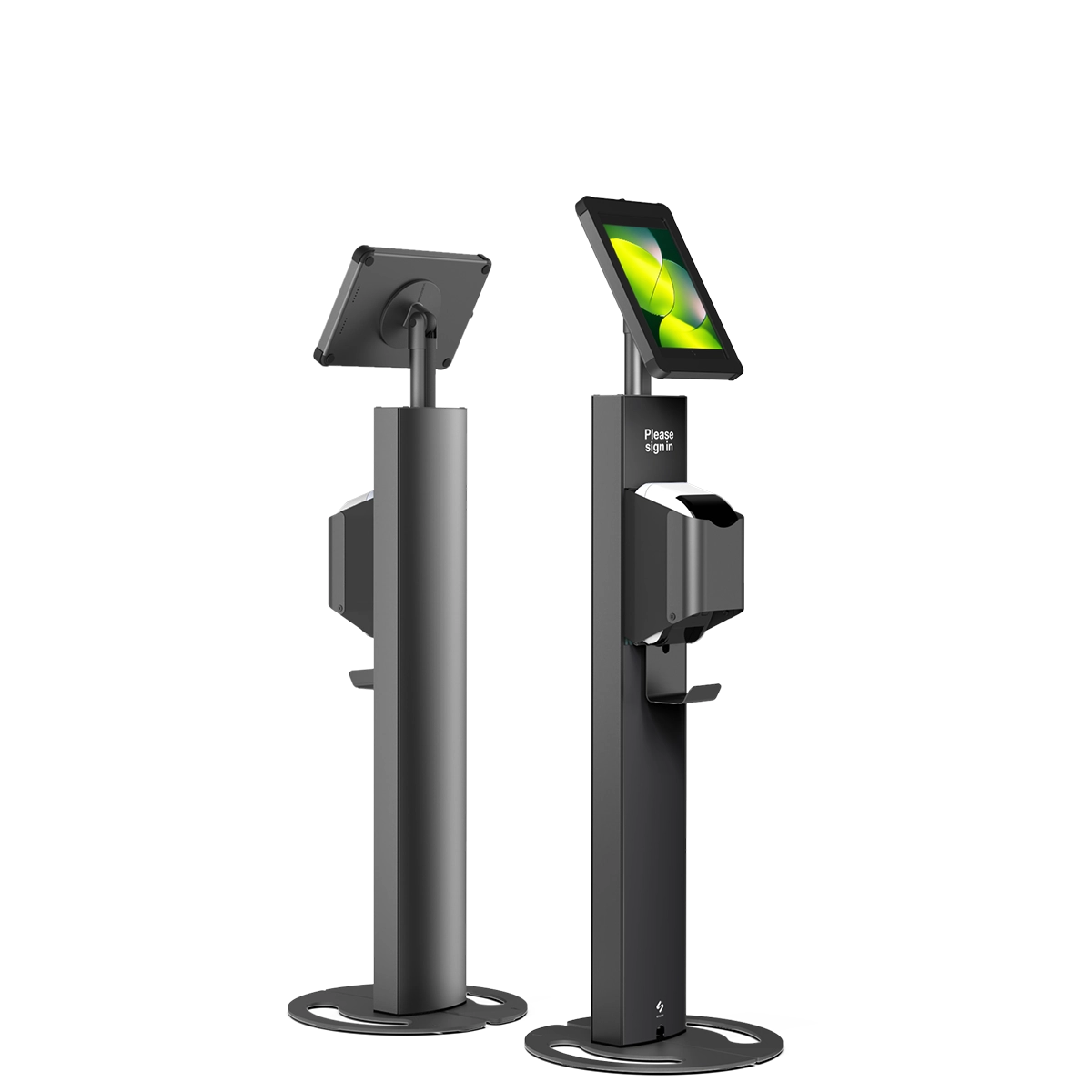 The T Print 10 label printer kiosk stands at 1m, ensuring visibility while maintaining sightlines in any setting. With a simple setup requiring just a tablet, printer, and app, you can streamline operations and enable on-demand printing of adhesive-backed labels for visitor badges and temporary IDs.
